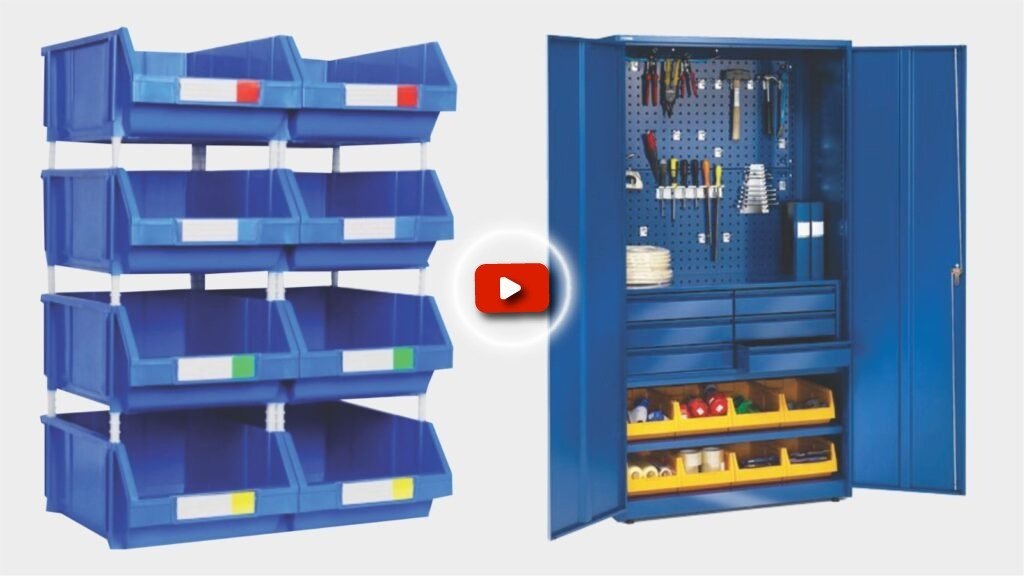The UK-Model plastic bin box combines rugged polypropylene construction with a space-saving modular design, ideal for racking, shelving, or wall-mounted storage systems.
