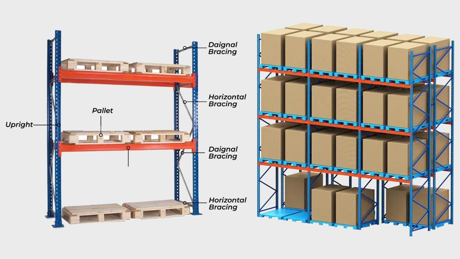 Pallet racks which are heavy-duty and designed to store pallets in a secure and systematic manner. Best suited in enhancing warehouse operations as well as utilizing vertical space.
